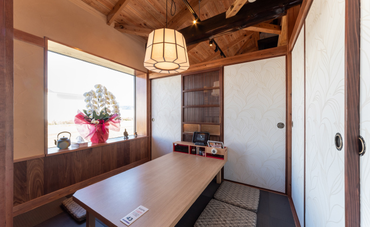 広々とした空間は、賑やかなパーティーや忘新年会、そして静かに酌み交わす夜にも最適です。